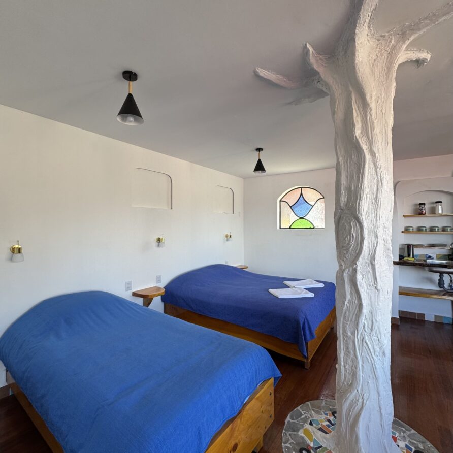 Una suite con caracter con una cama matrimonial y para algunas una cama simple irregular.