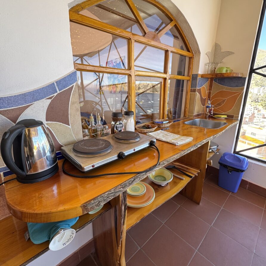 La habitación Standard es una habitación espaciosa con un pequeño patio compartido con hamacas y playeras, con vistas al lago Titicaca.